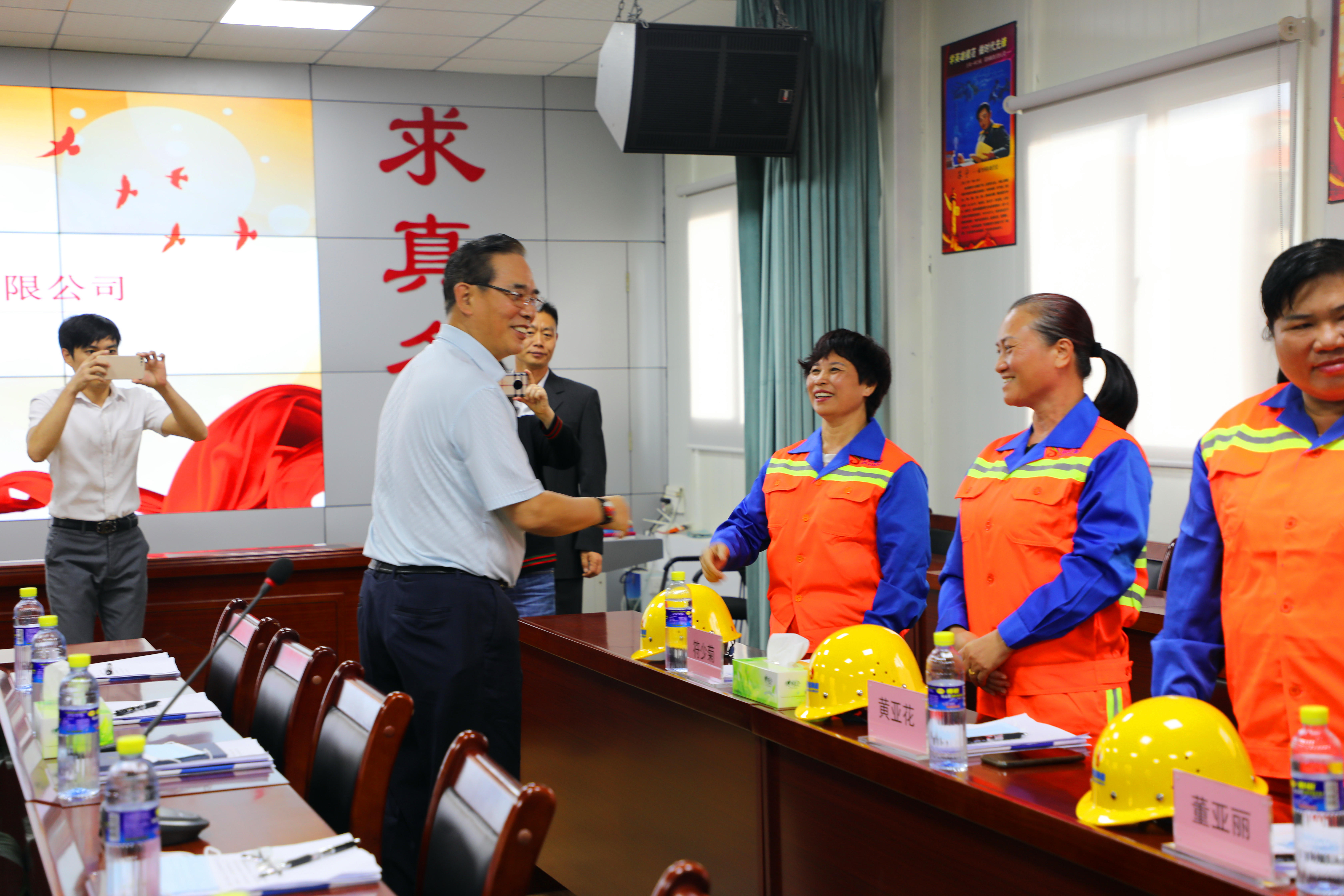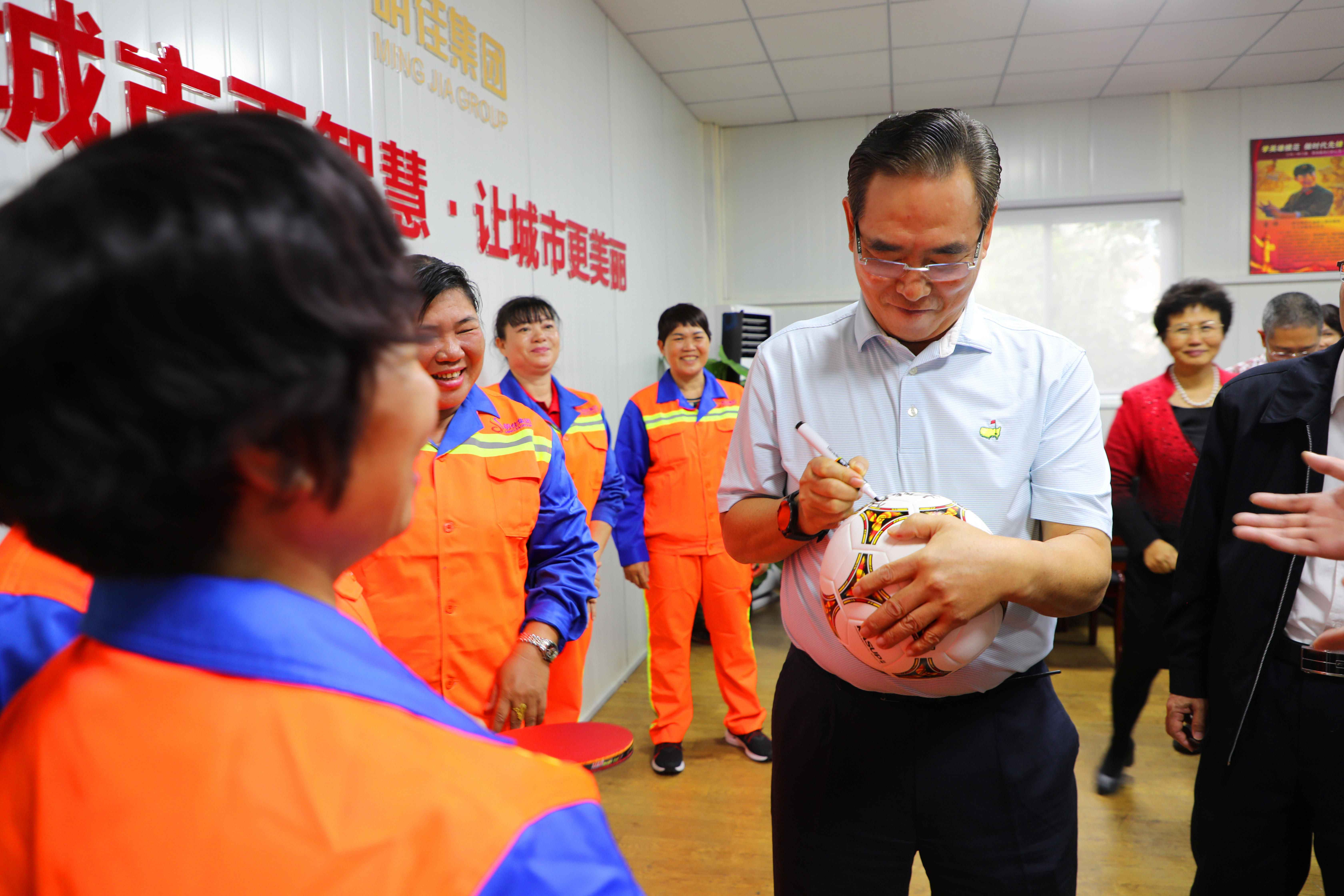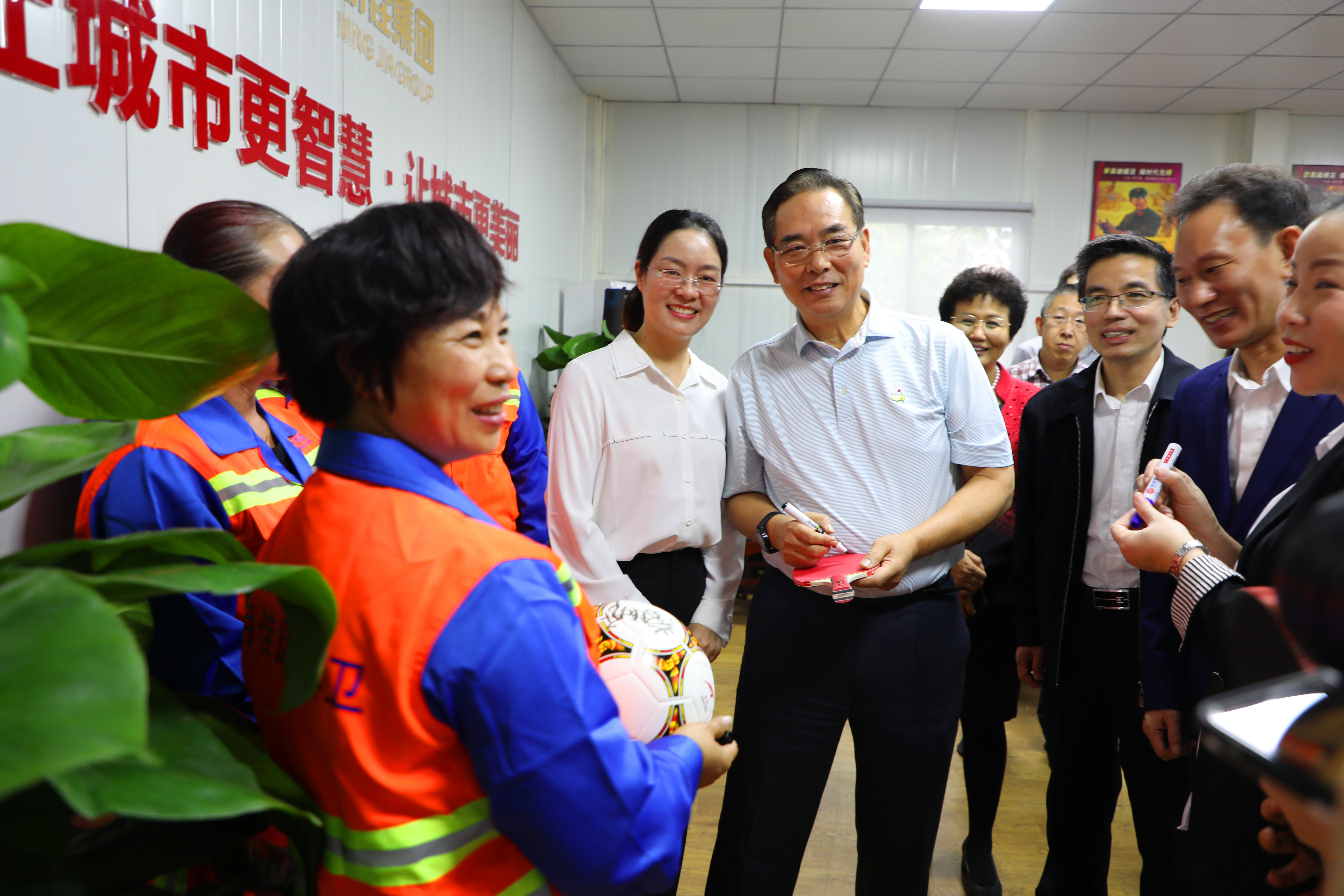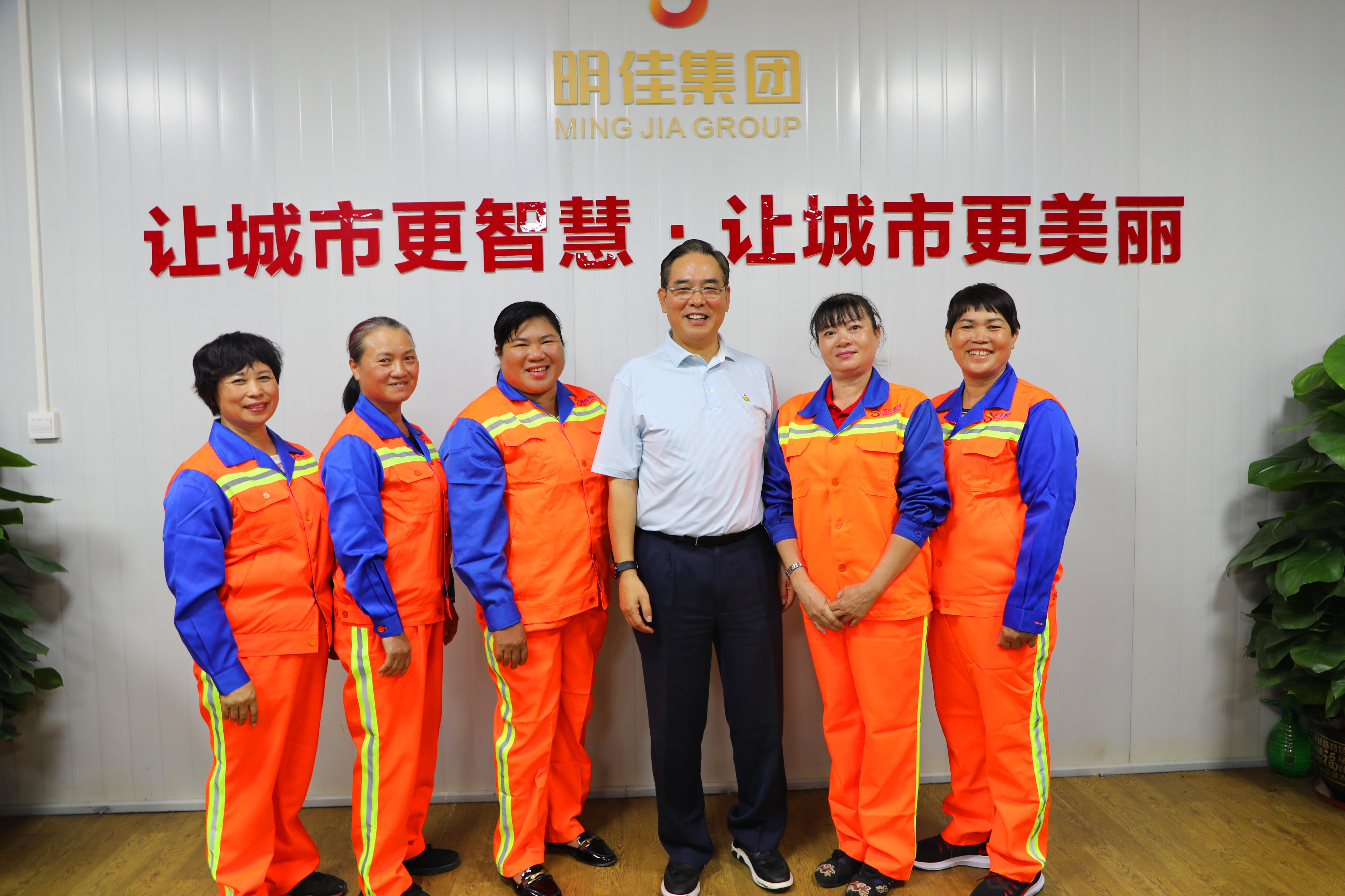 他肯定了明佳集團(tuán)工會取得的成績,并親切慰問了現(xiàn)場的環(huán)衛(wèi)工人,與他們一一握手,并合影留念。