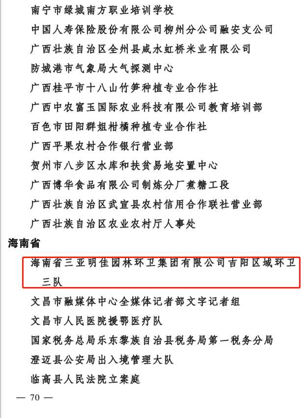 “芬芳三月,如歌巾幗。”在慶祝第111個三八國際勞動婦女節(jié)之際,三亞明佳園林環(huán)衛(wèi)集團有限公司吉陽區(qū)域環(huán)衛(wèi)三隊榮獲2020年度“全國巾幗文明崗”榮譽稱號!叭珖韼轿拿鲘彙笔侨珖鴭D女“巾幗建功”活動專設(shè)崗, 是全國婦聯(lián)為表彰積極為國家、為社會、為人民做出突出貢獻,取得優(yōu)異的優(yōu)秀婦女團體而頒發(fā)的榮譽稱號。