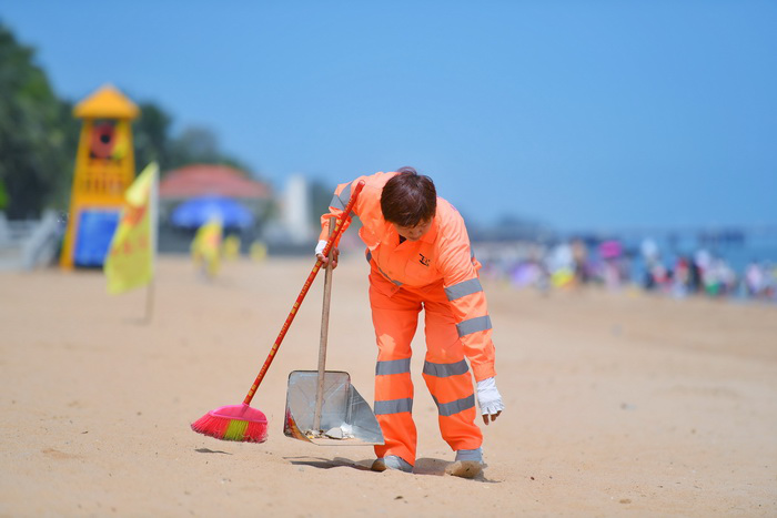 不管風(fēng)吹日曬、酷暑嚴(yán)寒,他們總是起早貪黑、兢兢業(yè)業(yè),在海灘、在街道、在公廁、在田野、在橋底、在垃圾轉(zhuǎn)運(yùn)站隨處可見(jiàn)他們的身影,城市的干凈整潔離不開(kāi)他們勤勞的雙手,他們才是真正的城市美容師,這就是環(huán)衛(wèi)工人的工作寫照。