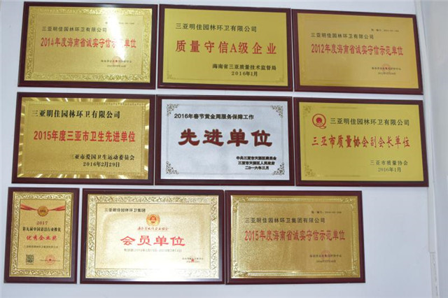 目前母公司連續(xù)五年被海南省企業(yè)信用評定中心評定為信用AAA等級單位,并榮獲中國清潔清洗行業(yè)國家一級資質(zhì)、城市環(huán)境衛(wèi)生經(jīng)營服務(wù)A級資質(zhì)、城市園林綠化三級資質(zhì),被中國清潔行業(yè)推選為國家三星級企業(yè)、十佳清潔服務(wù)企業(yè)、杰出貢獻(xiàn)企業(yè),并榮獲2016年中國清潔行業(yè)百強品牌,成為中國清潔行業(yè)常務(wù)理事單位、中國衛(wèi)生有害生物防制協(xié)會會員單位、中國城市環(huán)境衛(wèi)生協(xié)會會員單位、海南省衛(wèi)生協(xié)會理事單位、三亞市環(huán)境保護(hù)協(xié)會副會長單位,公司先后多次獲得國家、省、市獎勵和表彰40余次,成功在海南省股權(quán)交易中心掛牌,代碼:90777,并積極籌劃在新三板上市,已真正成為海南省環(huán)衛(wèi)行業(yè)的龍頭企業(yè)。